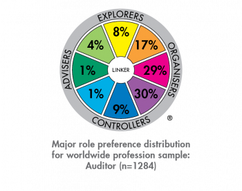 According to our sample of Auditors, the majority have the major role preference of Concluder-Producer at 30% closely followed by Thruster-Organiser at 29%. Controller-Inspectors make up only 9% of Auditors.