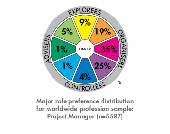 Consider the scenario where you have been contracted to run a team development program incorporating the TMP for a group of Project Managers. One activity within that program may involve comparing their team’s major role preference distribution against the normative data for this profession in Figure 256. Equip with these simple visuals you can lead a valuable discussion by asking questions such as: